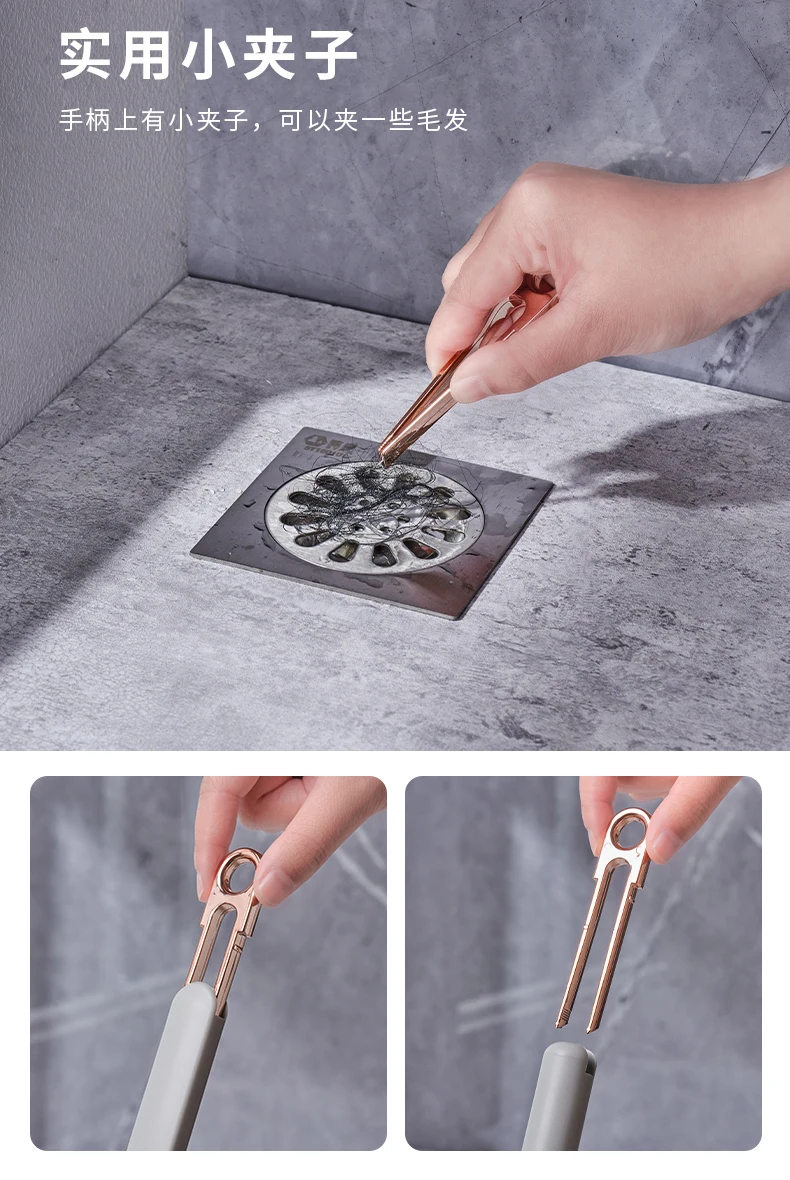 A pair of little tongs at the end of the brush handle