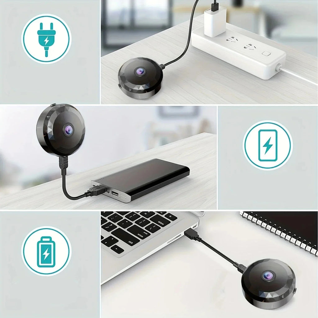 A Mini Câmera Espiã oferece vigilância por vídeo em 1080P HD, garantindo imagens nítidas e claras em qualquer situação. Com capacidade de conexão WiFi (2,4 GHz) e suporte para gravação de áudio, esta câmera é ideal para proteção e monitoramento contínuo de sua casa ou escritório.