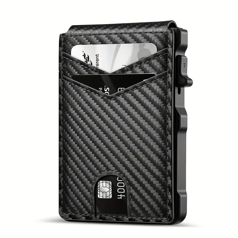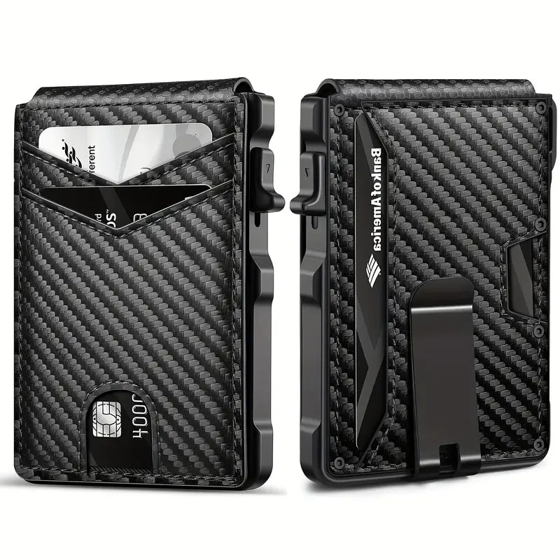 O suficiente para seus itens essenciais diários! Nossas carteiras finas são engenhosamente projetadas para comportar no máximo 12 cartões, distribuídos estrategicamente entre a caixa de alumínio para cartões e os slots externos para cartões.